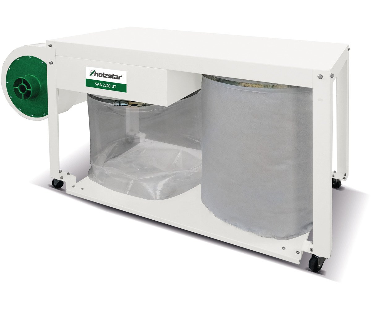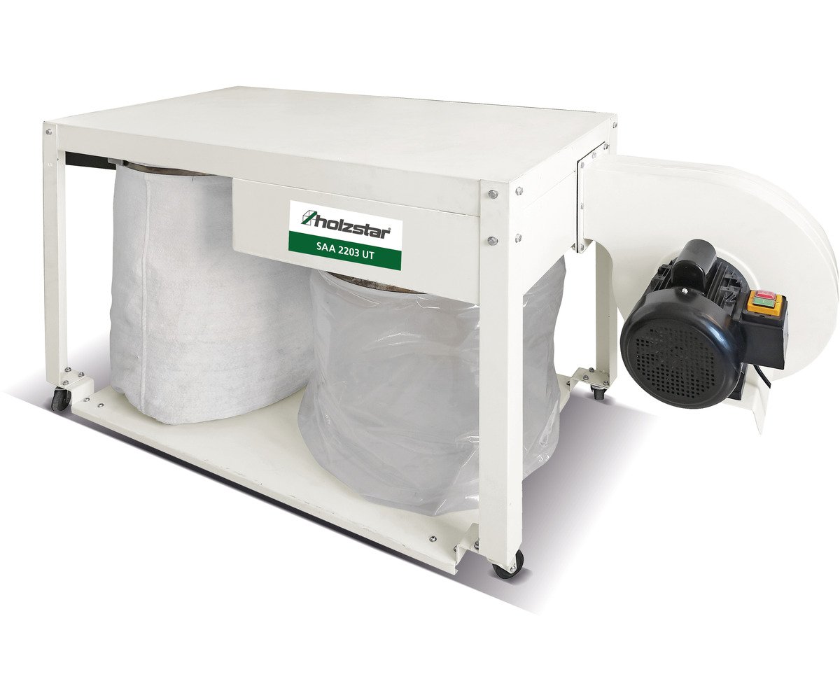 Aspirateur à copeaux pour le bois modèle bas, avec moteur puissant monophasé 230V de 1,65 kW.