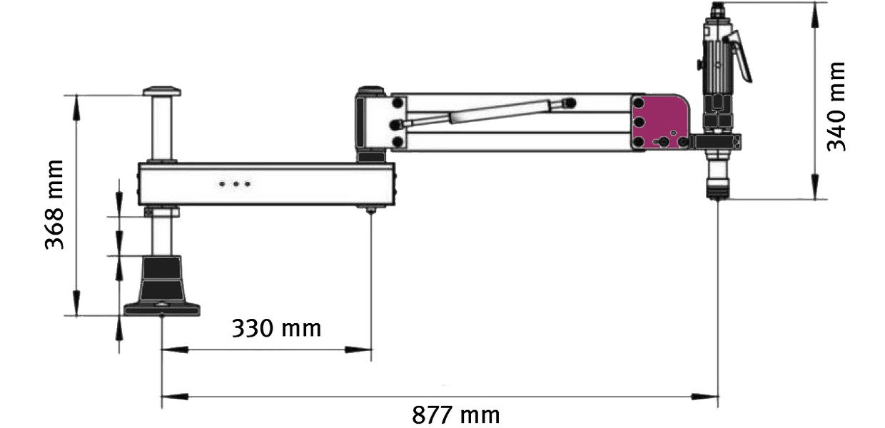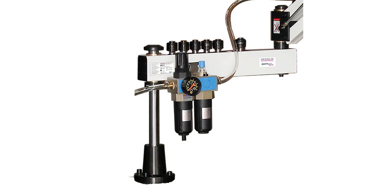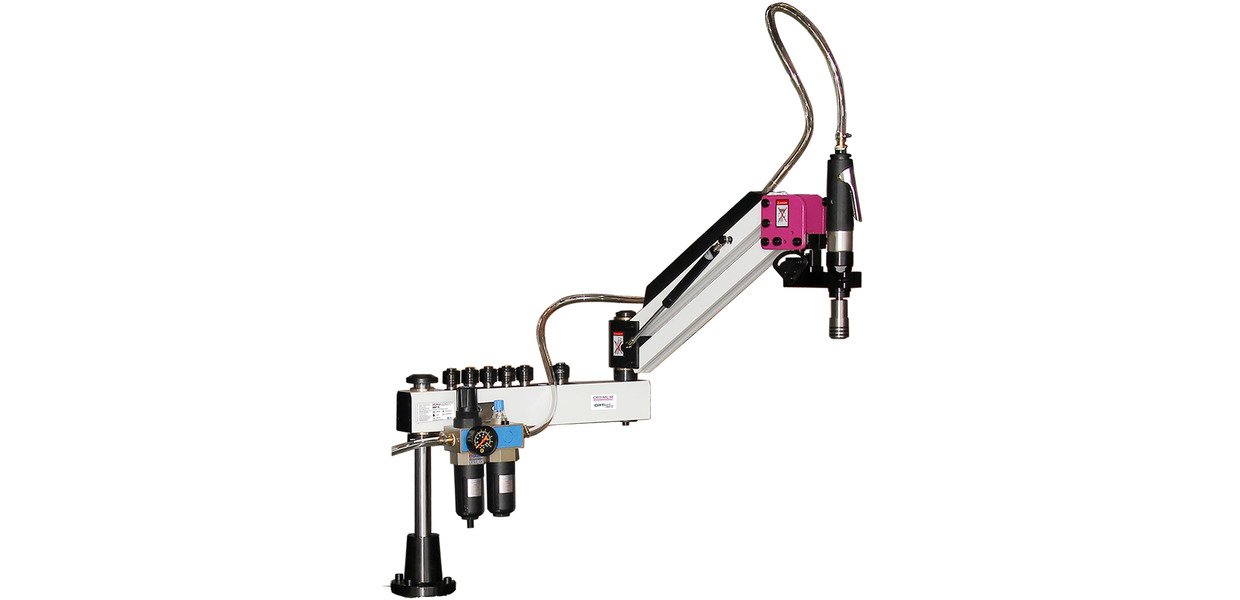 Bras de taraudage pneumatique de M3 à M16 250 tpm 6 bars portée effective 877 mm avec 8 douilles de taraudage ø19 mm Optidrill