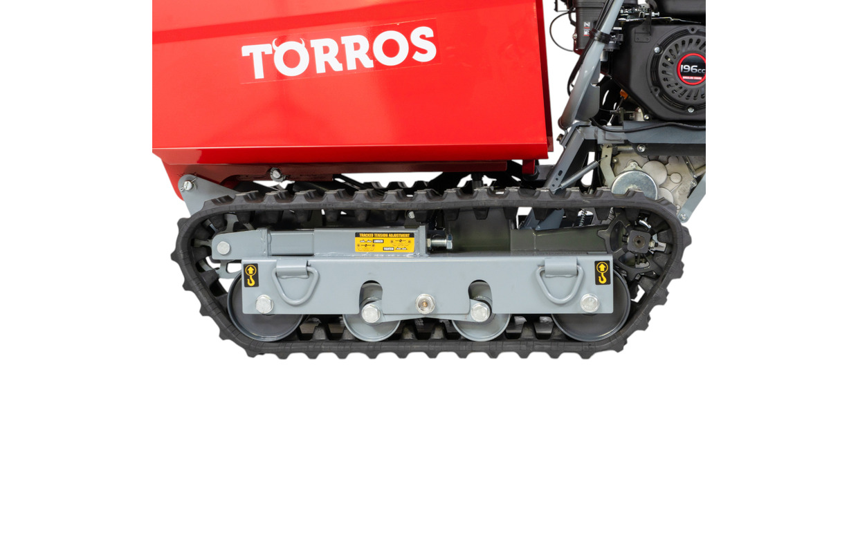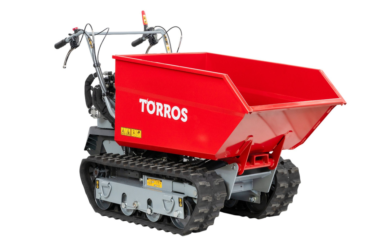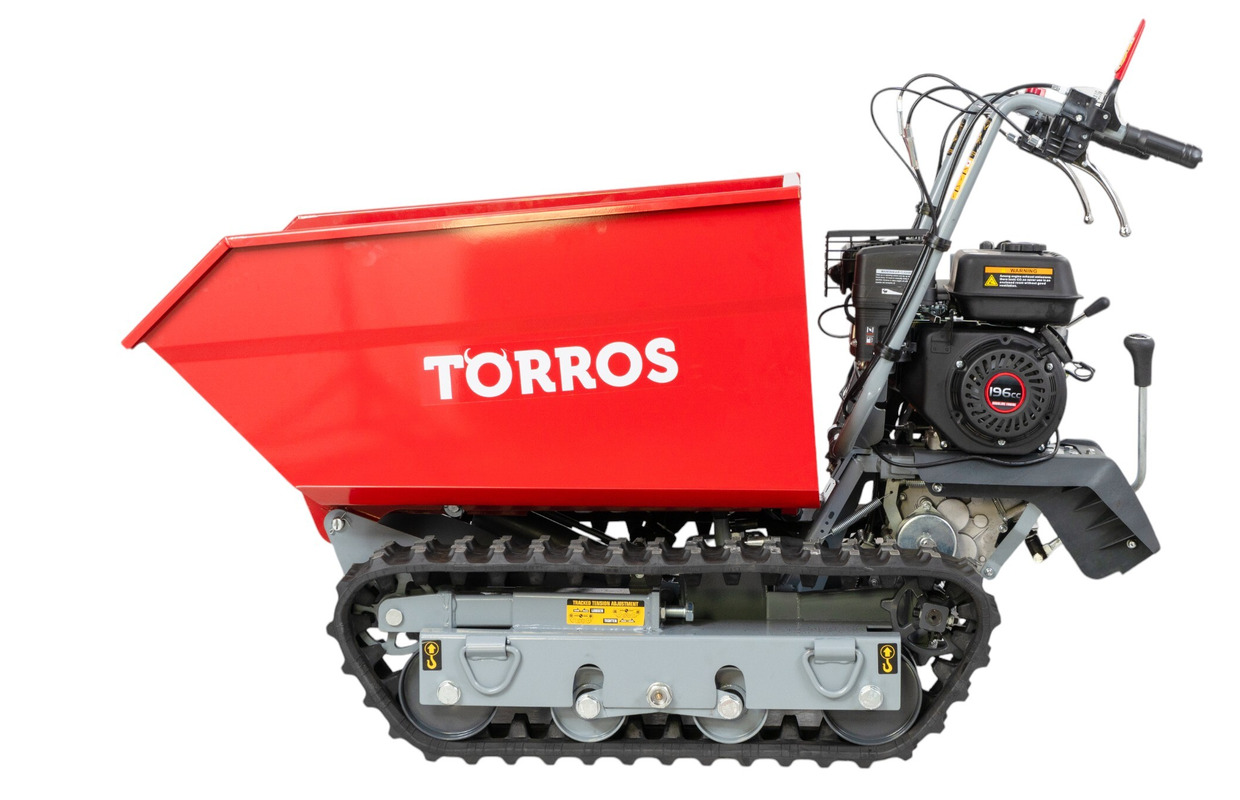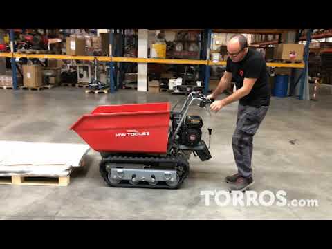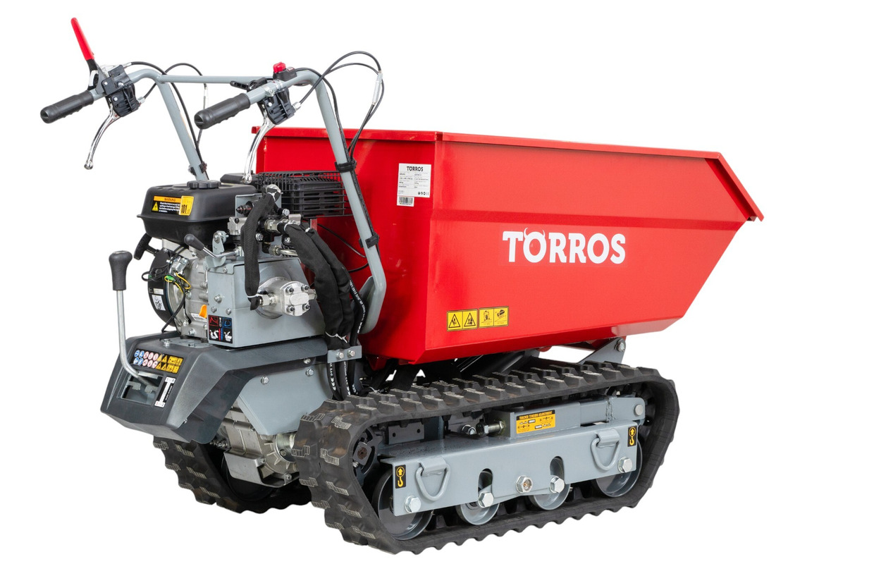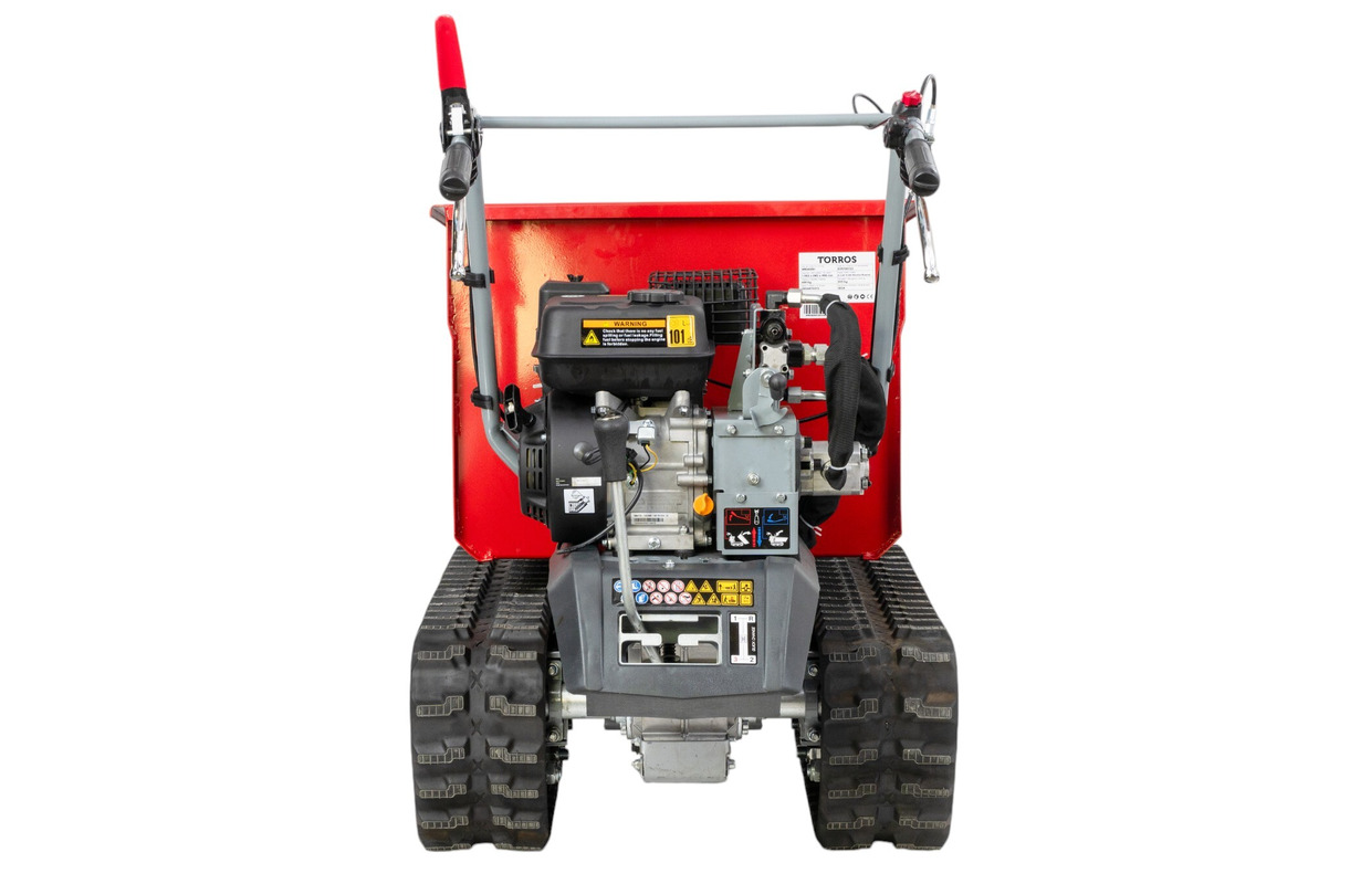 Brouette motorisée essence à chenilles surélevées et monte-escaliers benne basculante hydraulique 600KG 6,5CH 3+1R vitesses Torros