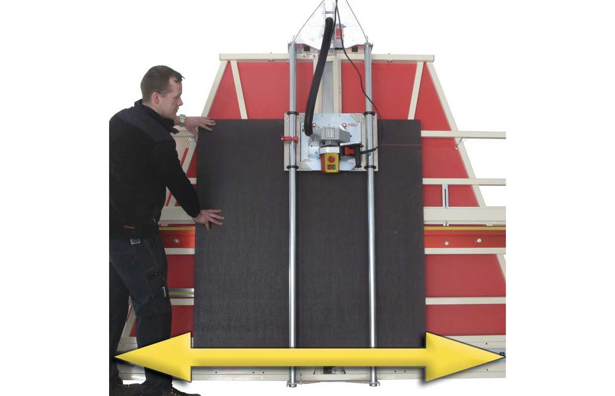 - Foncionnement individuel. Une seule personne suffit pour manipuler confortablement de grands panneaux sur cette machine. Les panneaux sont chargés et déchargés verticalement, ce qui est beaucoup plus confortable qu'avec les scies à table horizontales.