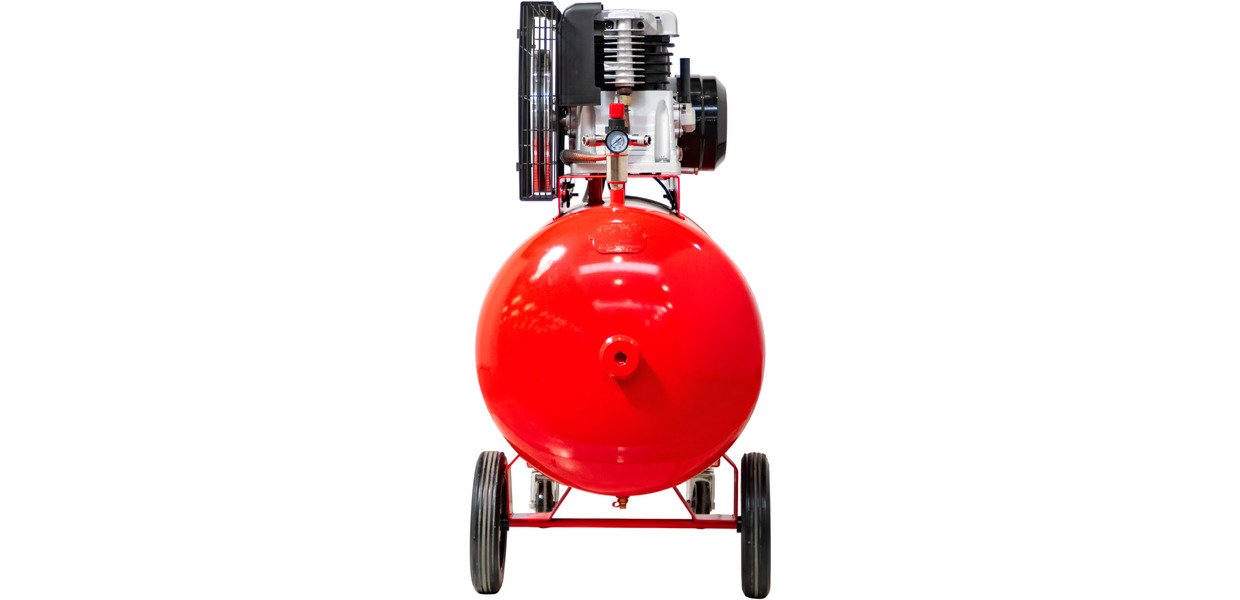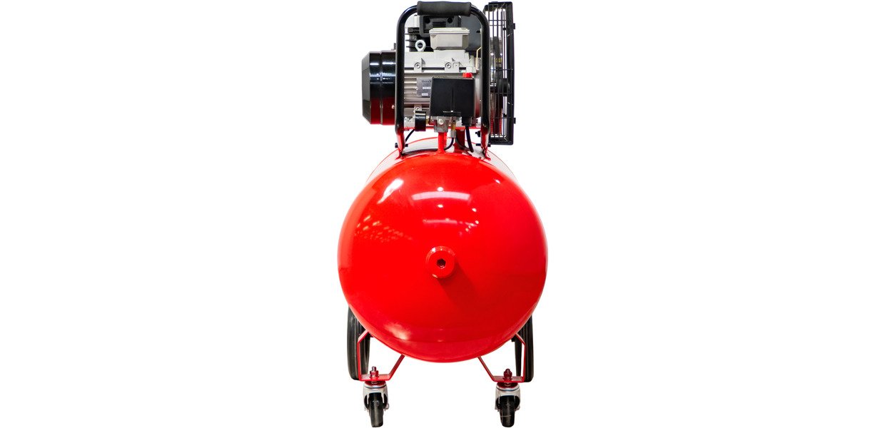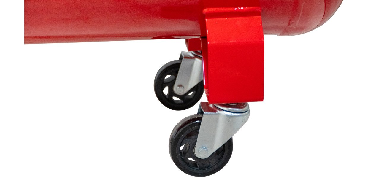 - Deux roues de grand diamètre et une roulette, ainsi qu'une poignée pour transporter ou déplacer facilement le compresseur