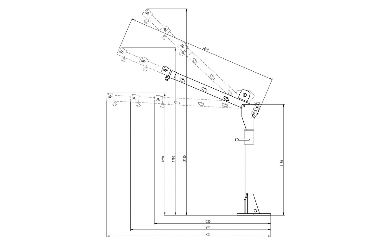 - La base lourde peut être fixée sur une plate-forme, la tête rotative à 360° permet de soulever et de déplacer les charges