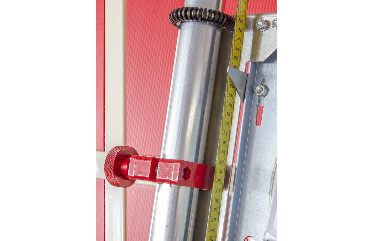 - 2 tubes de guidage chromés guident le bâti du moteur sur un ensemble de rouleaux de guidage en nylon renforcé de graphite. Ce système de guidage à sec ne nécessite aucune lubrification et est insensible à la sciure.