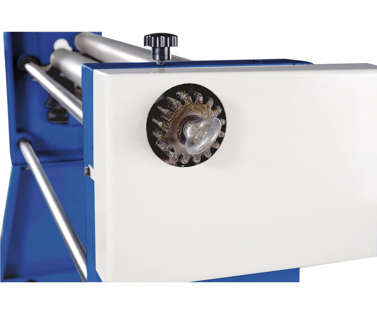 Rouleuse manuelle à 3 rouleaux avec disposition asymétrique des rouleaux, une largeur du travail de 1000 mm, et une épaisseur jusque 2 mm en acier.
