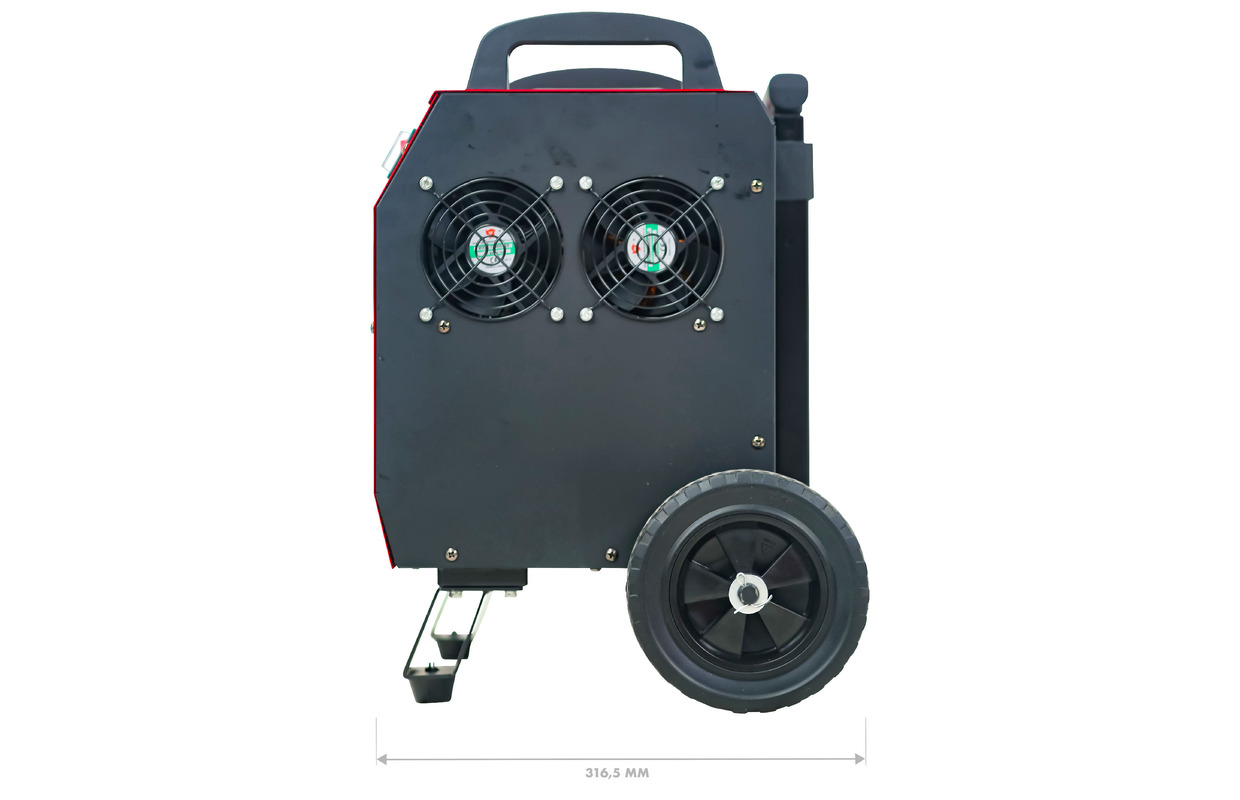 - Le boîtier en acier industriel et les grandes roues sont résistants