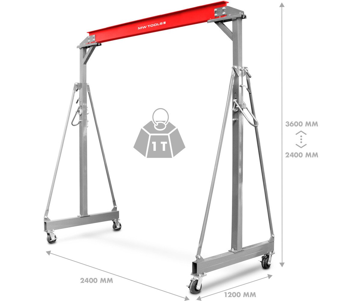 Portique mobile d'une tonne, d'une largeur de 2600 mm et d'une hauteur de 3720 m.