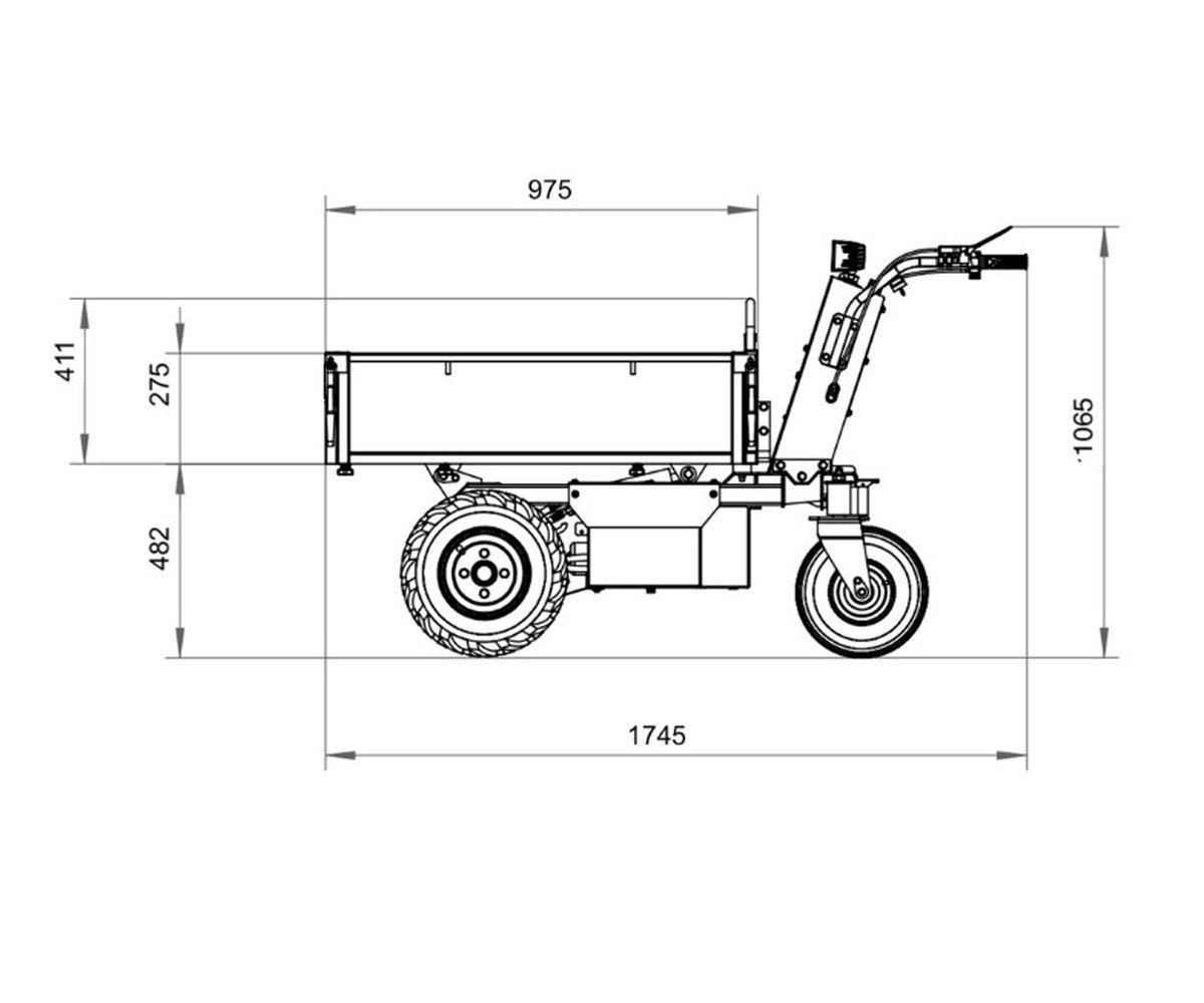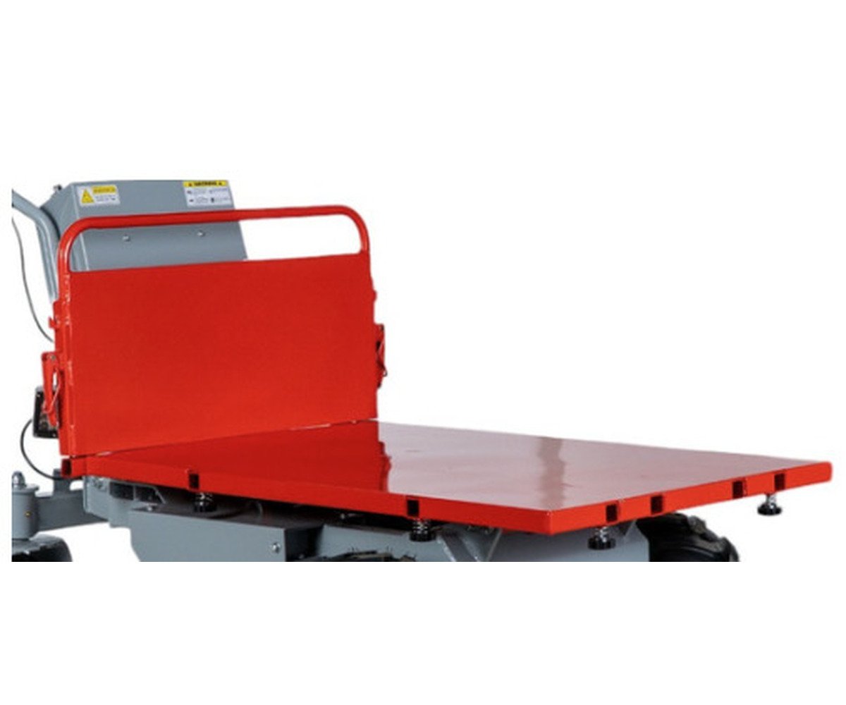Mini dumper électrique d'une capacité de 500 kg avec benne plate et basculement manuel.