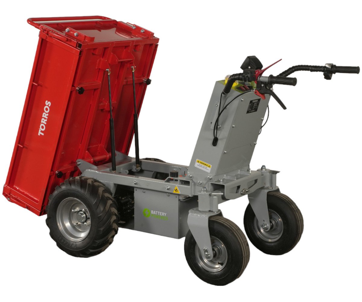 Mini dumper électrique 500kg 211L plateau basculant par vérin cloison amovible batterie 48V / 32Ah Torros
