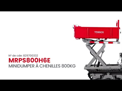 Minidumper à chenilles avec élévateur à ciseaux hydraulique benne plateau 800kg 13CH 6+2R vitesses démarrage électrique Torros