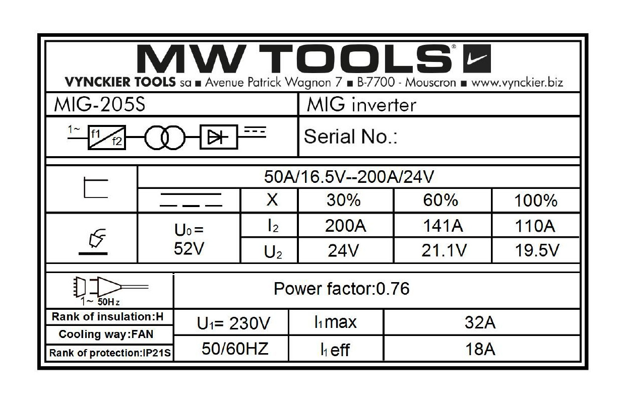 Poste à souder inverter MIG Synergie LCD 200 A + accessoires MW Tools