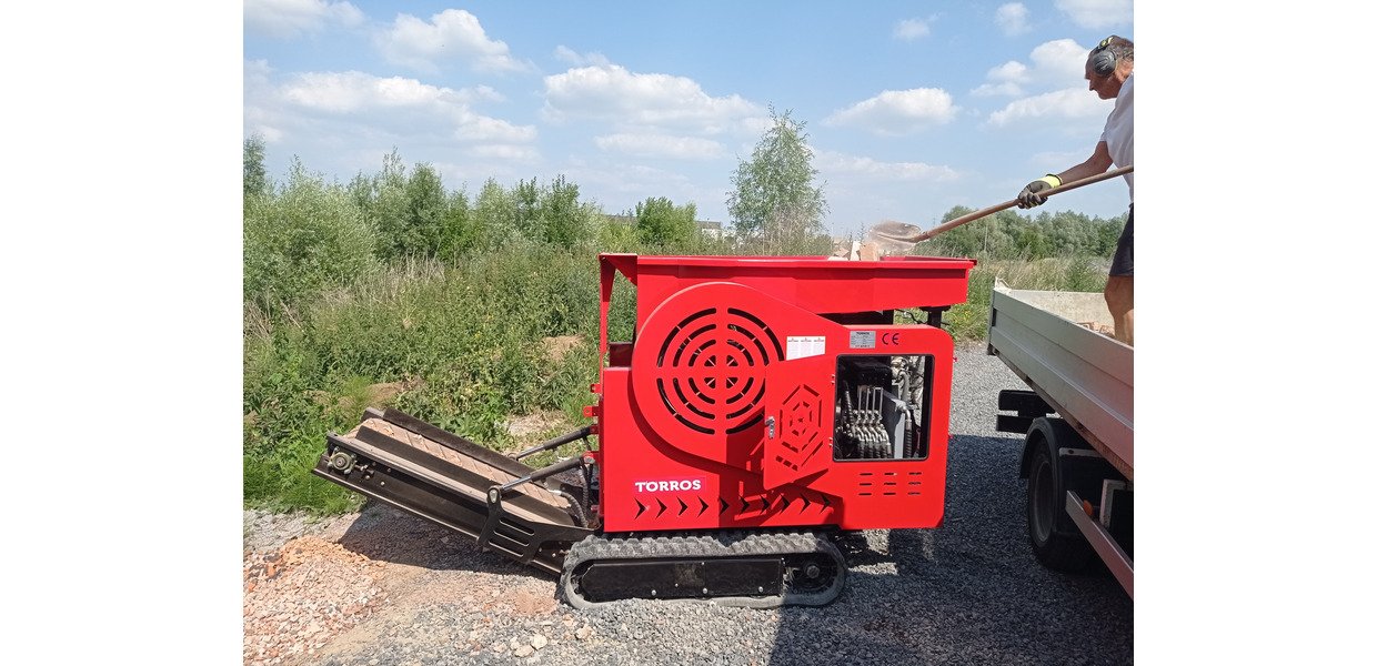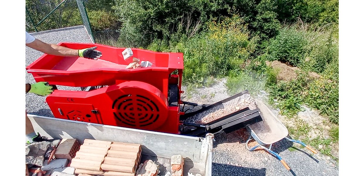 Concasseur pour le recyclage de gravats de pierre et de béton en matériaux réutilisables pour le pavage, les fondations, les terrasses, etc.