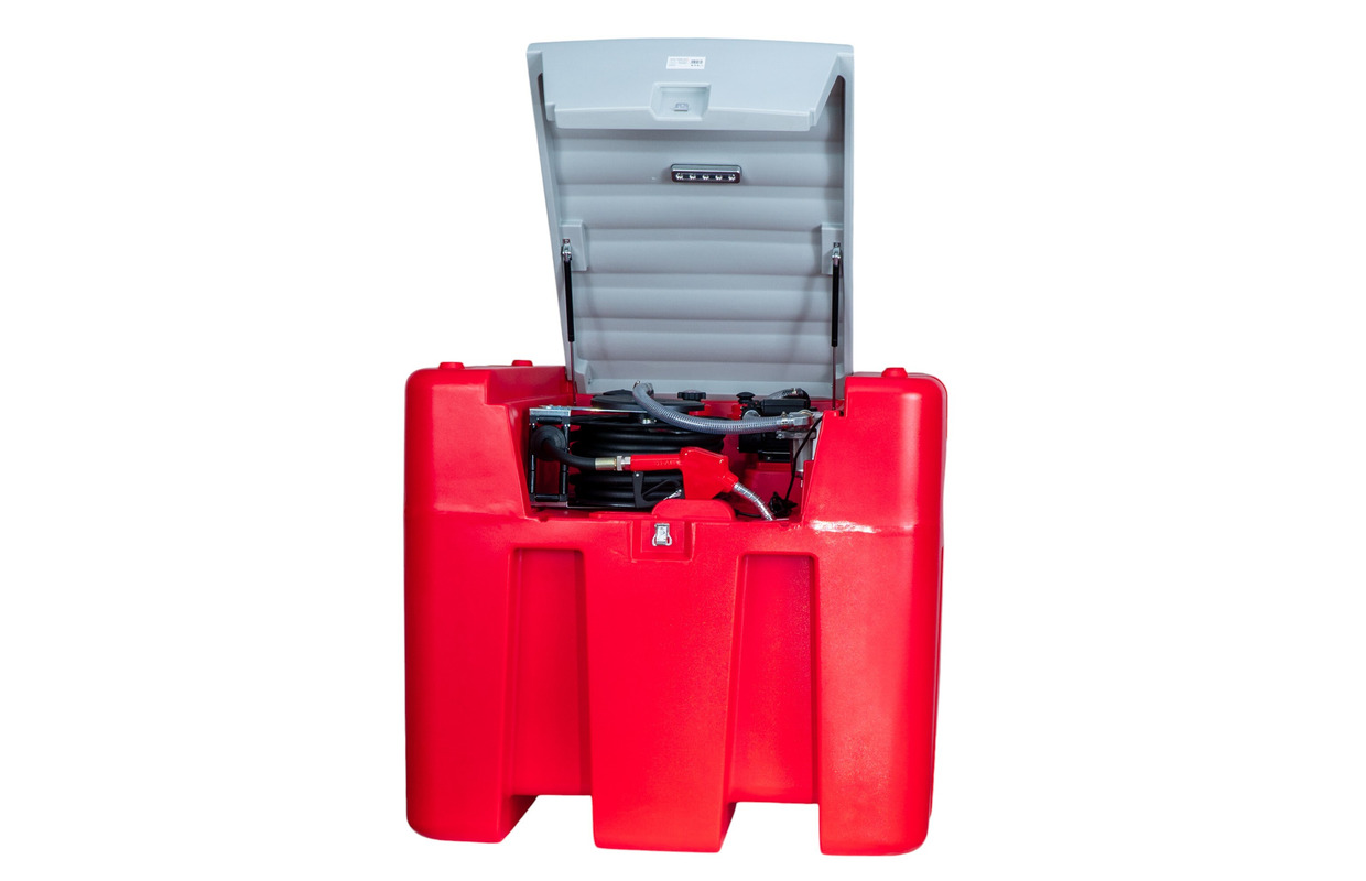 Cuve mobile de 980 litres avec pompe électrique de 230V et 10 mètre de tuyau avec raccordement 3/4" pour le transport, le stockage et l’approvisionnement du diesel/gasoil.