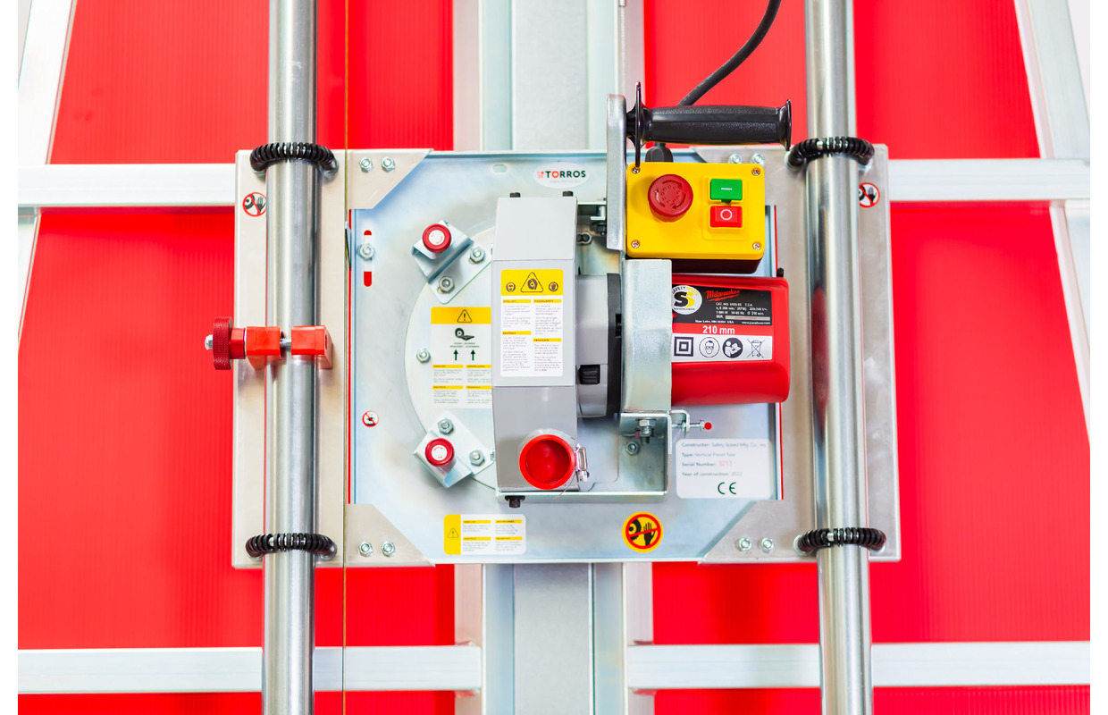 - Opération d'un seul homme. Une personne suffit pour manipuler confortablement de grands panneaux sur cette machine. Les panneaux sont chargés et déchargés verticalement, ce qui est beaucoup plus confortable qu'avec les scies à table horizontale.