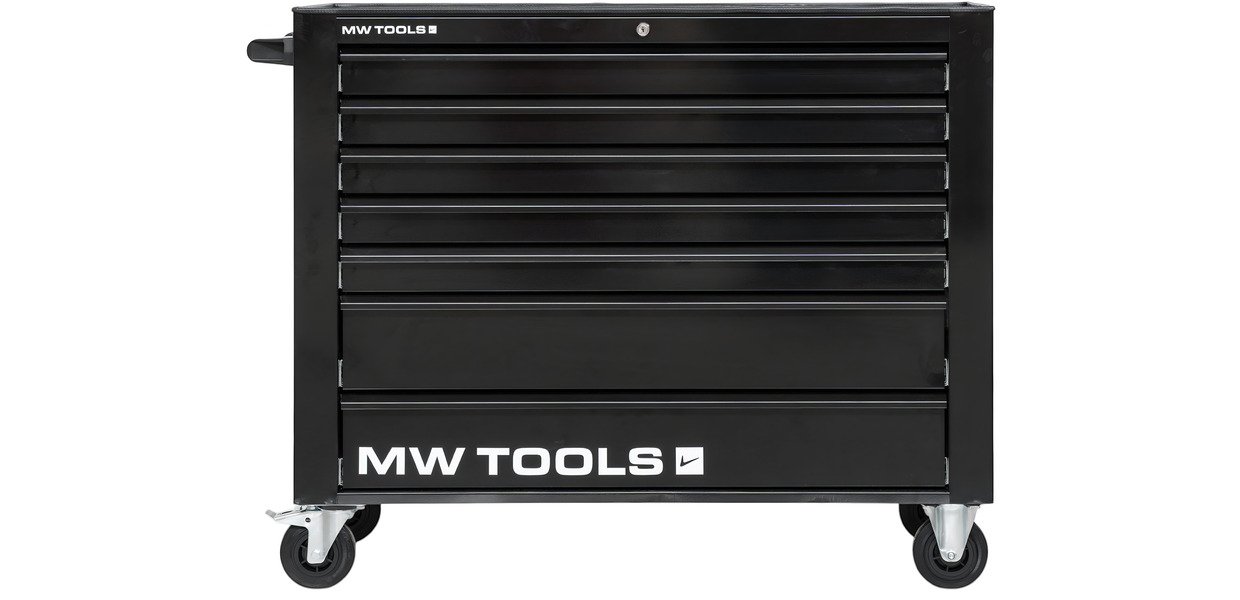 Servante d'atelier 7 tiroirs noire extra large 1135 mm avec verrouillage intégré dans la poignée roues ø125 mm MW Tools