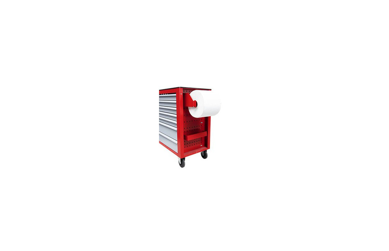 La servante possède 7 tiroirs, 5 de taille standard et 2 tiroirs hauts pouvant accueillir des outils plus volumineux. Les tiroirs sont montés sur des glissières télescopiques permettant une très bonne visibilité du rangement et de la capacité de chaque tiroir.